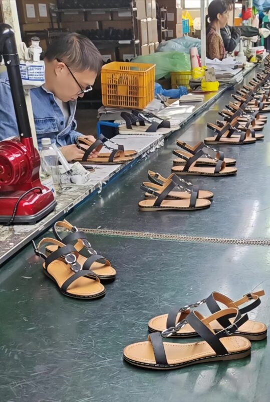 Our company has an independent blanking workshop,needle car workshop,molding has two advanced cold paste production line equipment and also has a separate finished shoes warehouse,The warehouse is also equipped with two dehumidifers to keep it dry.We mainly engaged in sandals,single shoes,cotton boots a series of products,mainly exported to Russia,Germany,France and other countries.The women’s shoes and other OEM processing products have won many businesses and Long -term cooperation with well-known brands,and established a good relationship of cooperation.