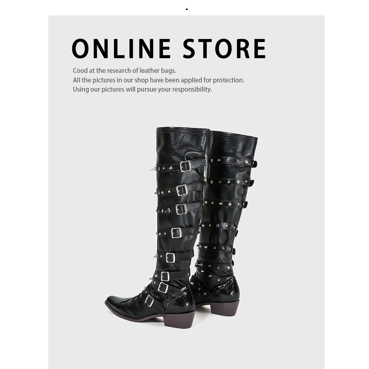 1.Stylish Design: The Dropshipping Custom Logo Punk Goth Cowboy Boots are a versatile and trendy addition to any wardrobe. Their fashionable design makes them perfect for both daily wear and special occasions.